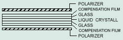 the surfaces of the two glass substrates. Polarizers attached
