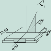the normal to the display, while a part with a six o'clock viewing